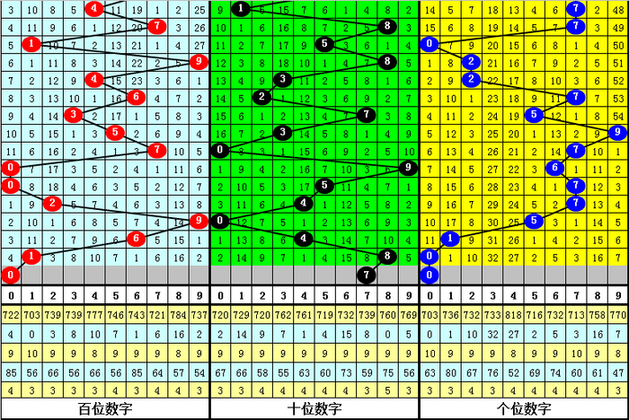 个位:上期奖号为0,近10期012路比为3:5:2,其中0路号遗漏4期再出,本期个位防0路号,情切0。