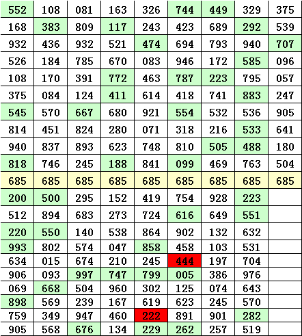 罗列三直选号码685开出之后,其下期号码的特质为: