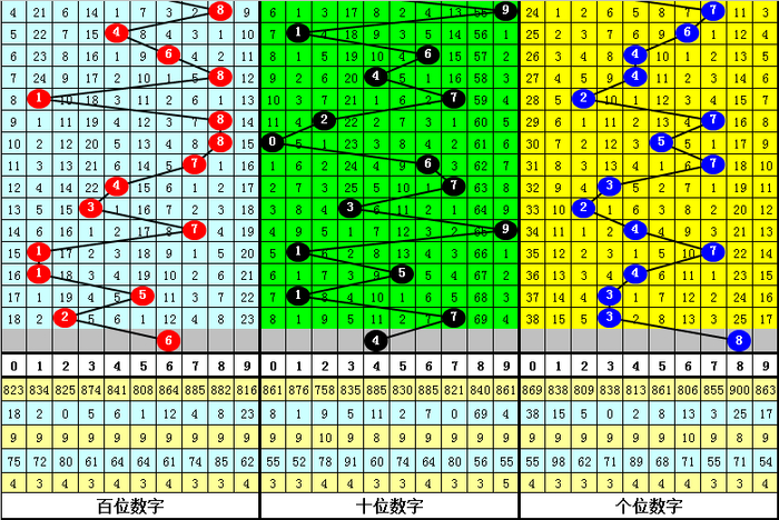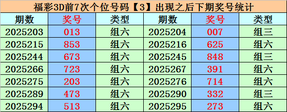 个位分析:上期个位开出奖号3,个位历史上号码3已开出838次,最近100期个位号码开出3次,上期号码为重号。
