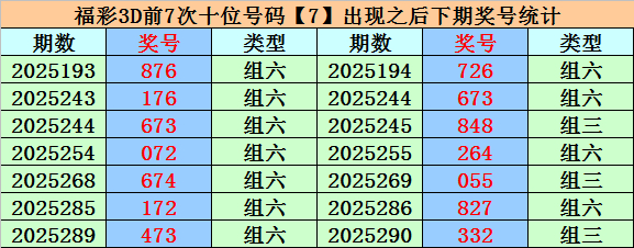 十位分析:十位上期奖号为7,历史上十位号码7已出现821次,最近100期该号码开出7次,上期号码遗漏值为5期。